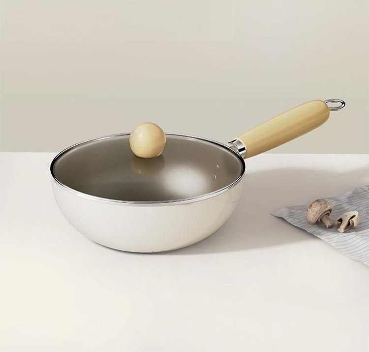 กระทะเคลือบเซรามิกสีขาวไม่ติดกระทะ